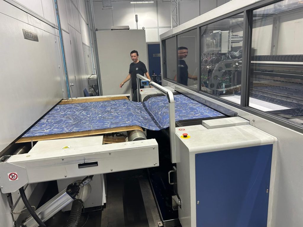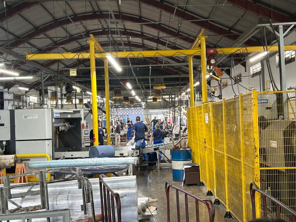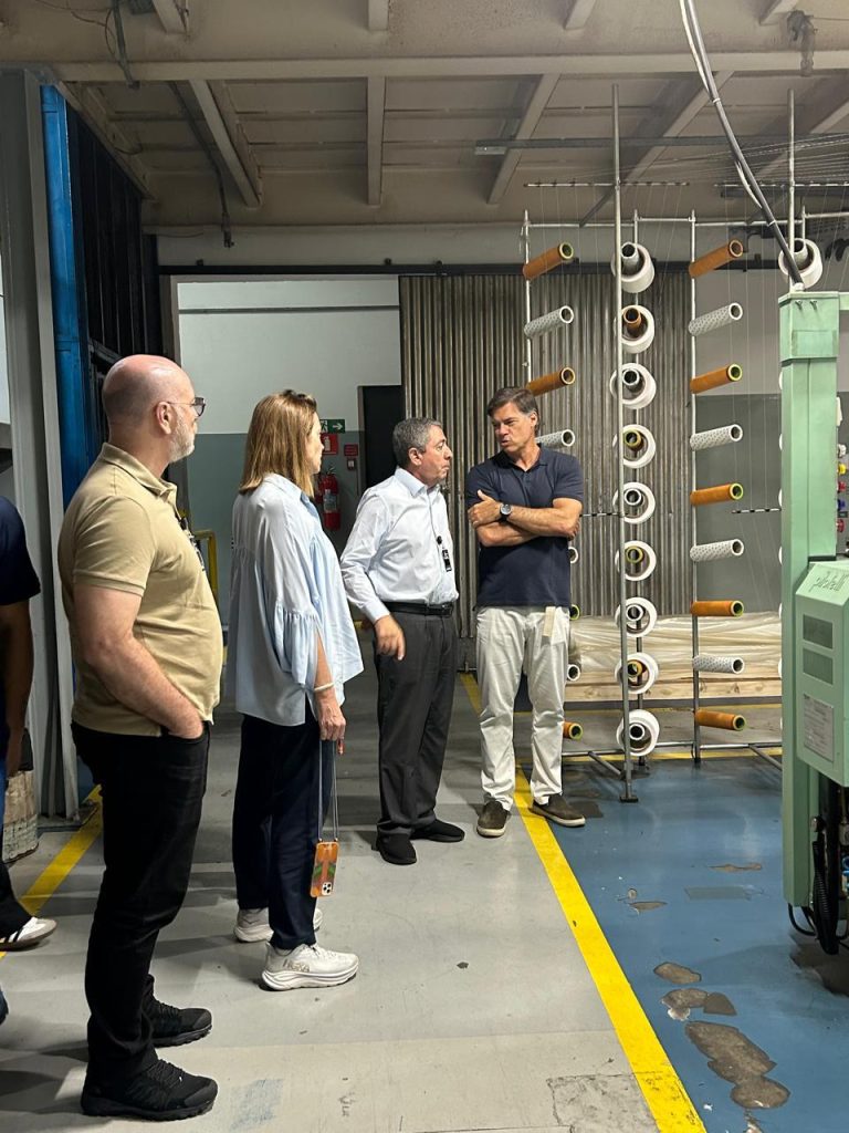Acompanhado de uma equipe multidisciplinar do Sinditêxtil-SP e dos diretores Luca e Gabriella, Pacheco percorreu por cerca de 90 minutos as dependências da fábrica para conhecer todo o processo de desenvolvimento – cartelas de cores e estampas, tingimento, produção de tecidos e malhas, impressão digital e embalagem para entrega aos clientes.